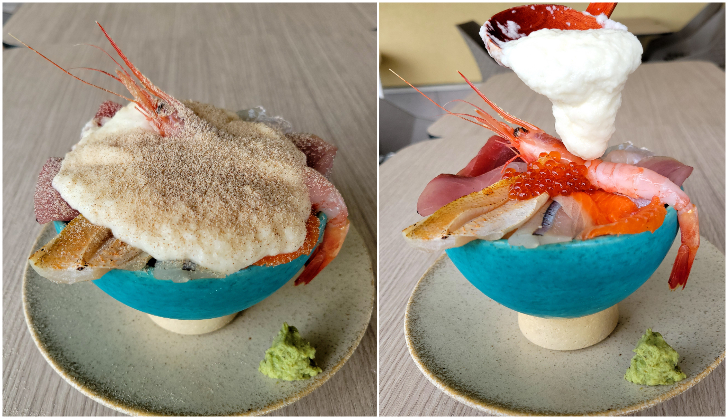 のどぐろ、本まぐろトロ、紅ズワイガニ、境港サーモン、地魚、しそ巻きらっきょうが一度に味わえる、今だけ限定の海鮮丼です!